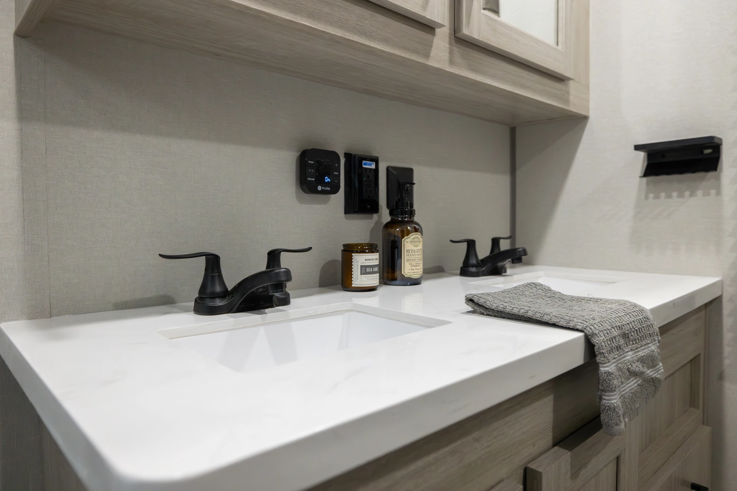 • Solid Surface Countertops Throughout (39FLTS, 40BHTS Kitchen Area Only, Seamless Thermofoil Countertops Outside of Kitchen Area)