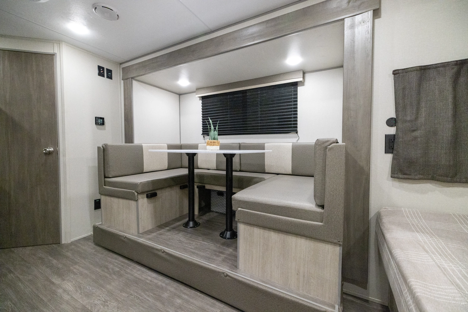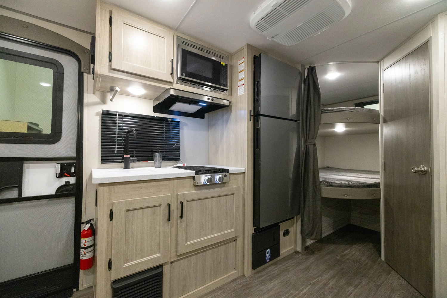 Extra-large living space with a rear bunkhouse and extended kitchen area. Lightweight for easy towing while offering a comfortable interior for families seeking adventure on the road.