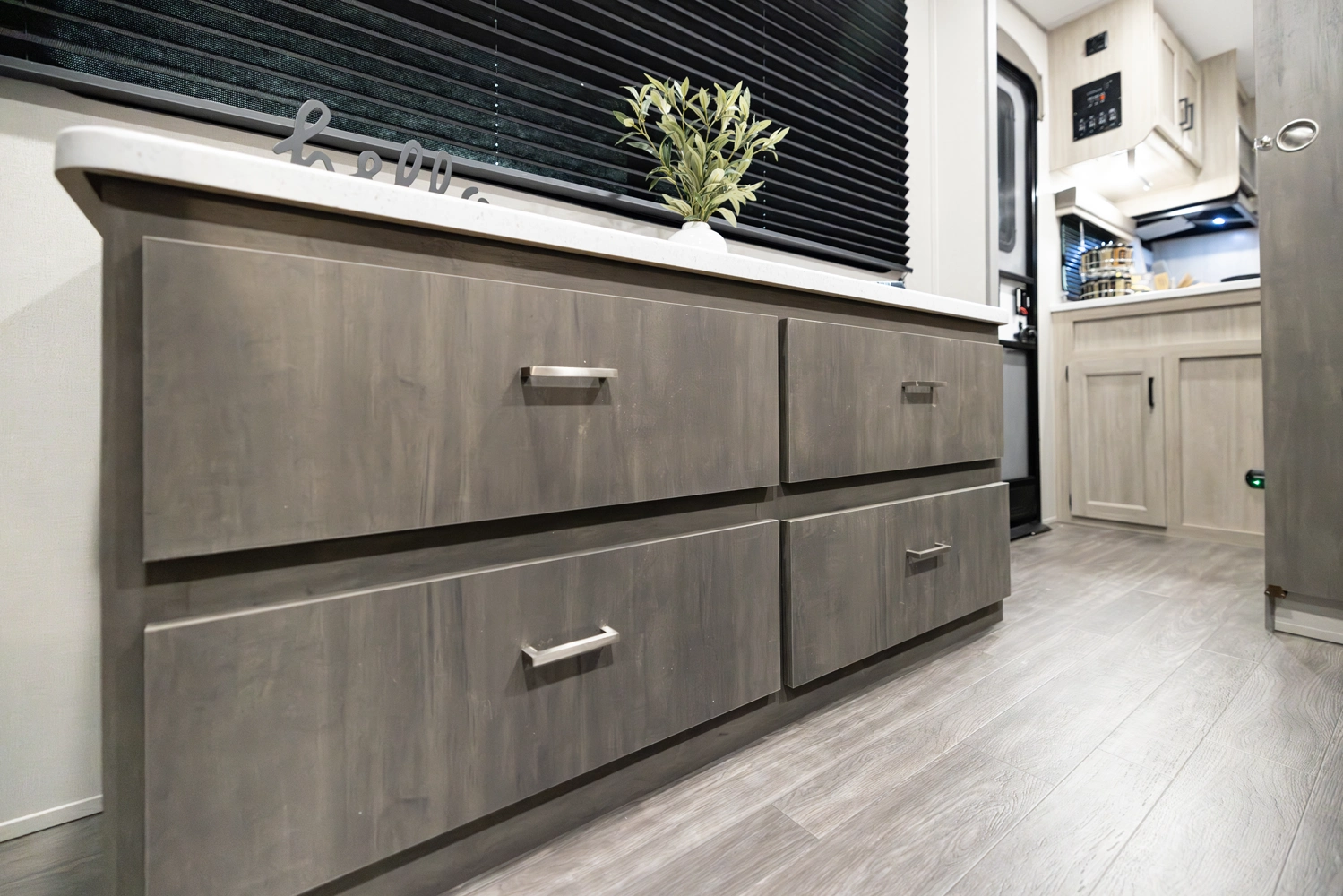 • Solid Surface Countertops in Kitchen Galley (No T-Mold)