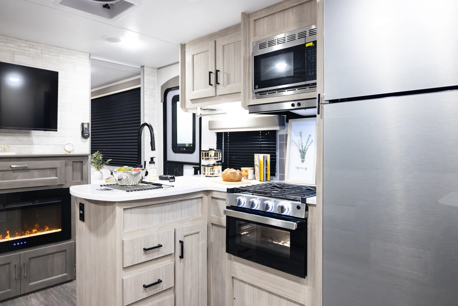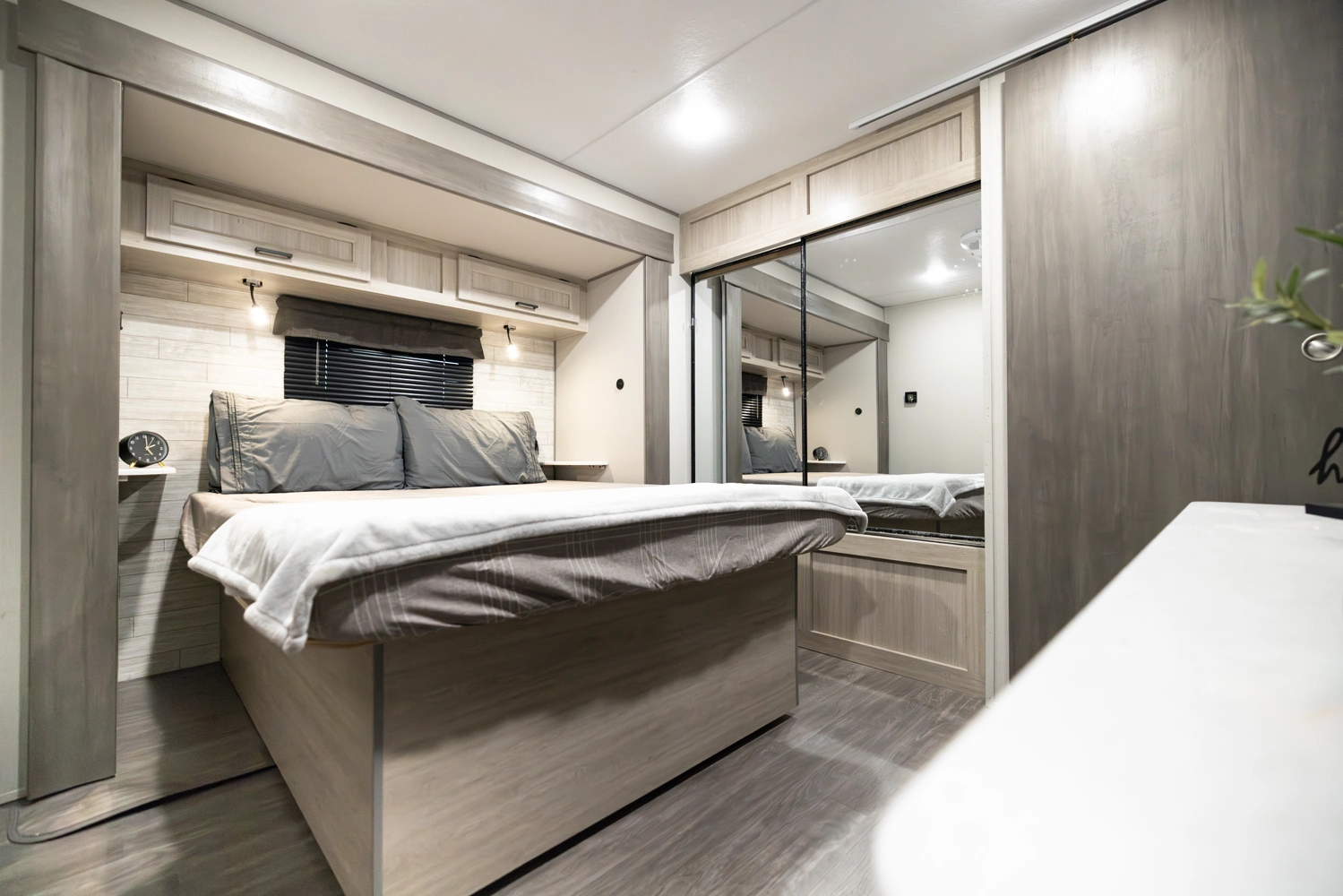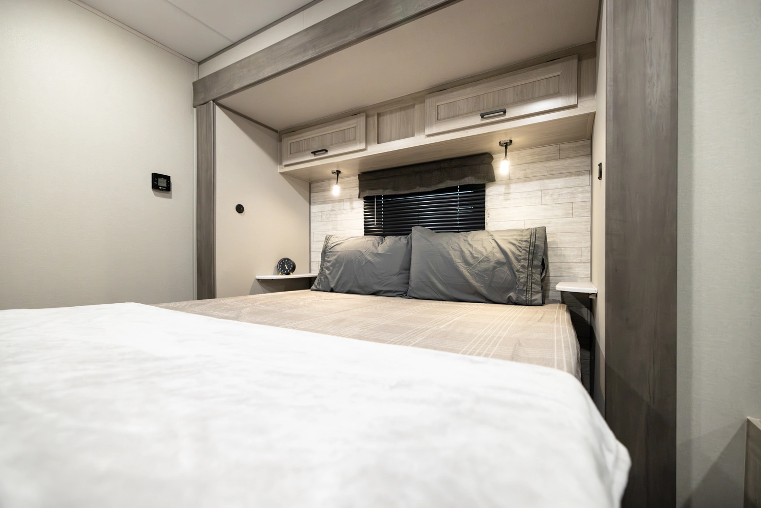 Spacious 37-foot design with two queen beds instead of bunks for couples or guests. Ample storage, durable construction, and comfortable interior make it ideal for extended trips or weekend getaways with friends and family.