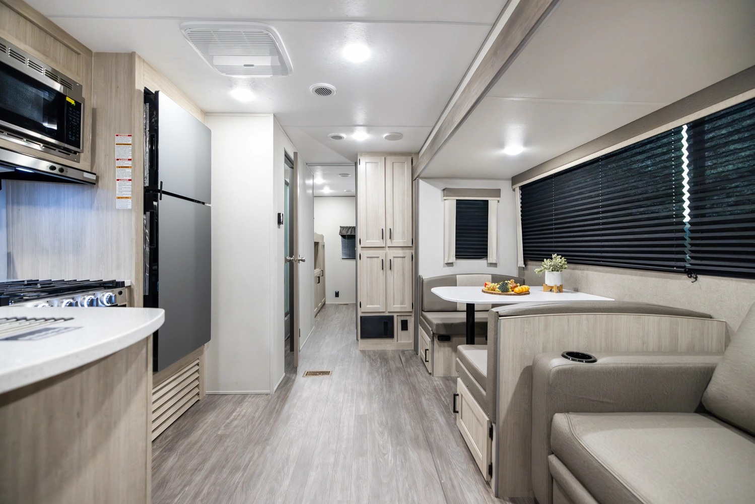 Built for large groups or multi-generational trips. Full bunkhouse and strong cargo capacity allow for loaded adventures. Durable frame and construction provide confidence for both boondocking and campground stays.