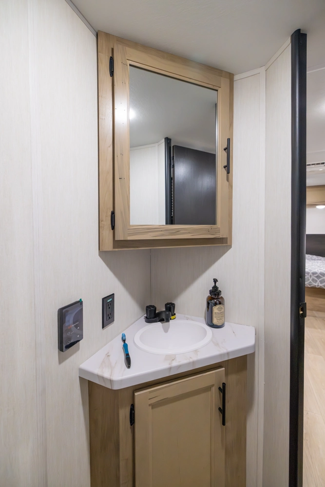 • Blackout Glass, Safety Slam, Friction Hinge Entry Door with Window and Shade Prep (N/A on LP models)