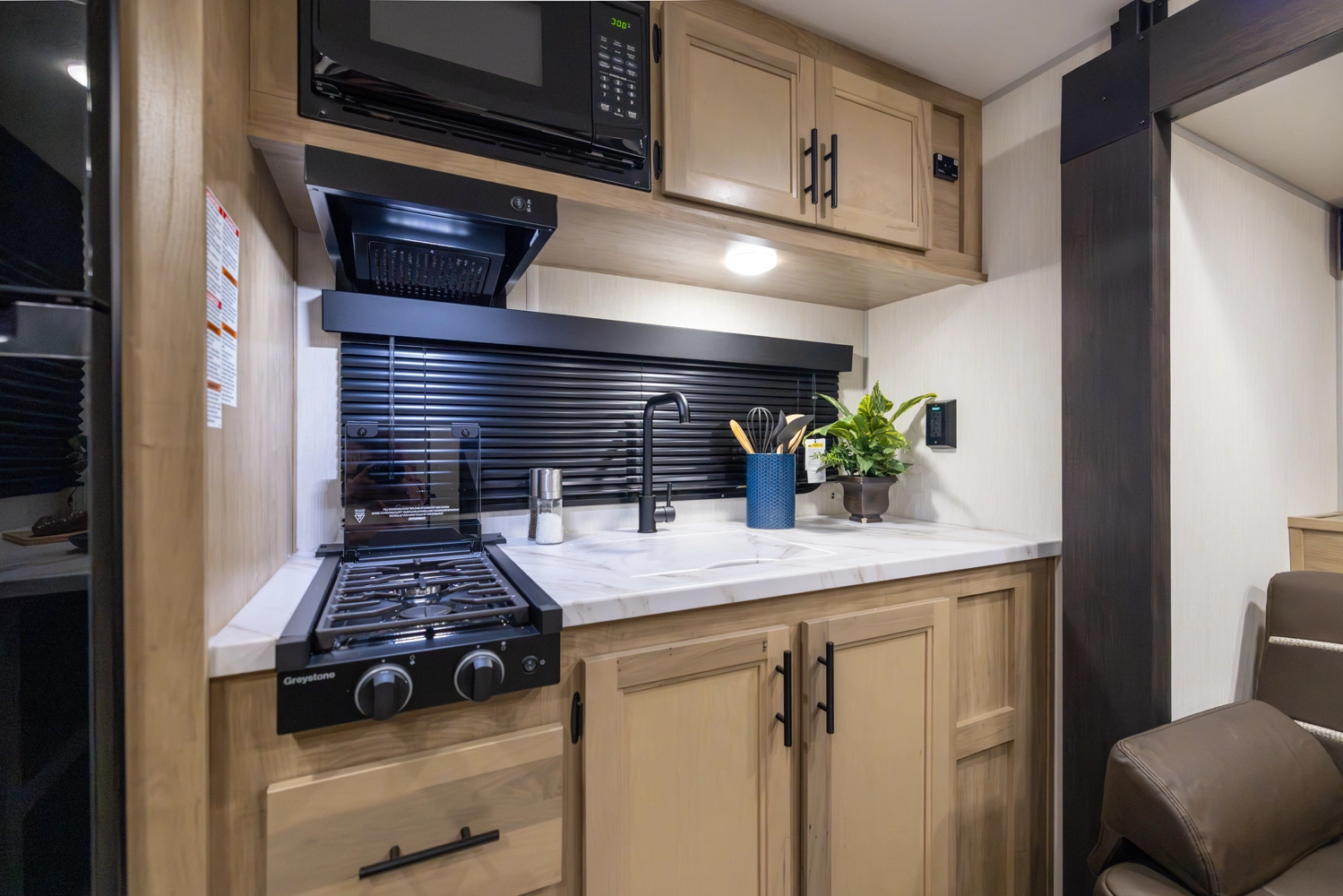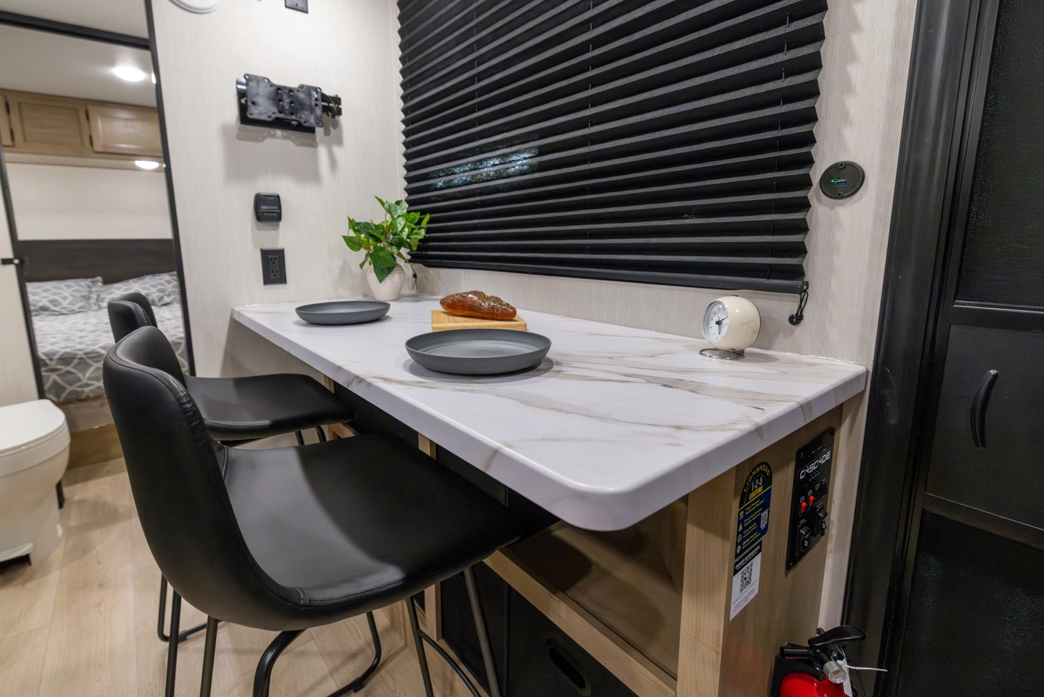 • Blackout Glass, Safety Slam, Friction Hinge Entry Door with Window and Shade Prep (N/A on LP models)