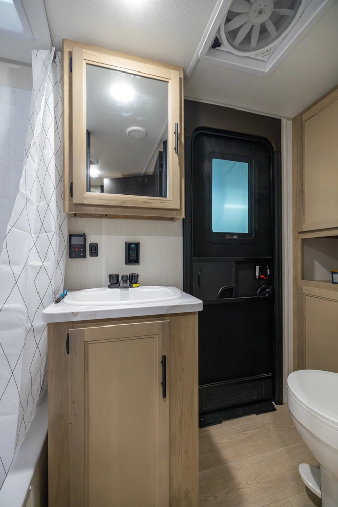• Blackout Glass, Safety Slam, Friction Hinge Entry Door with Window and Shade Prep (N/A on LP models)