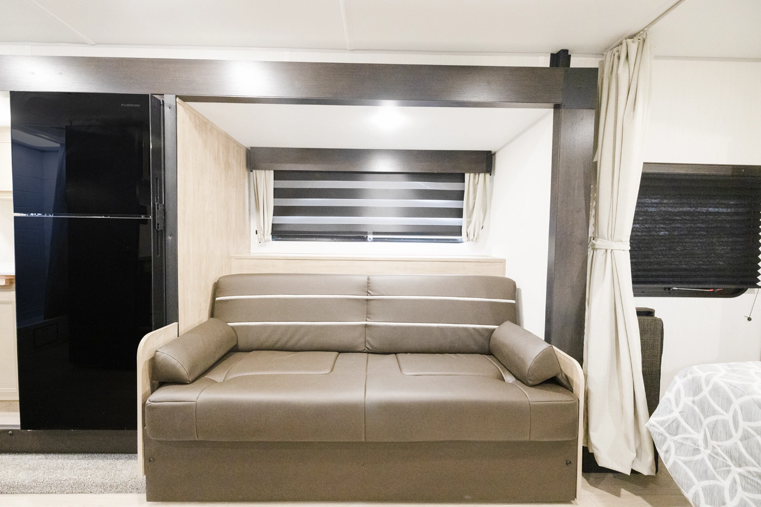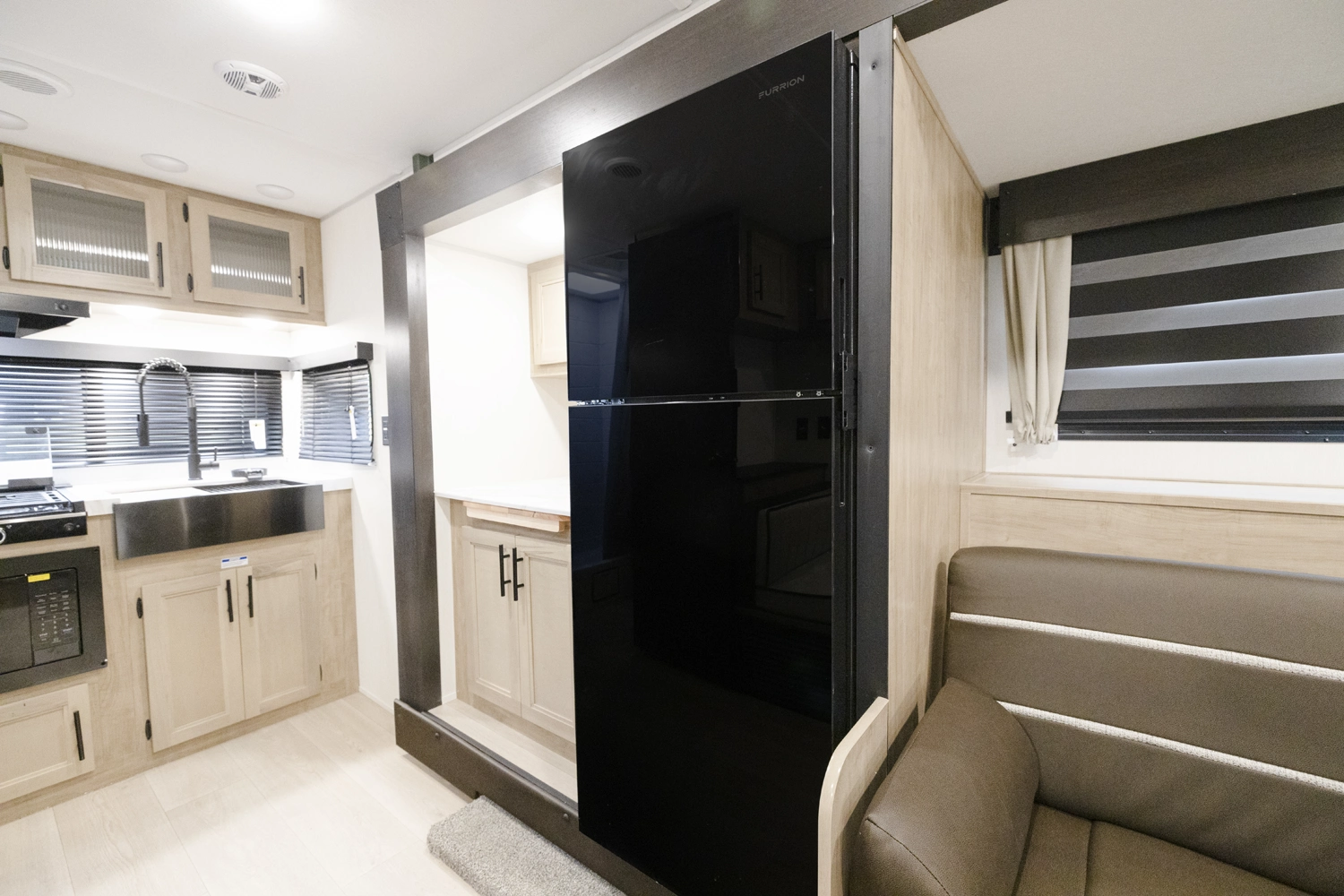 The Grey Wolf 22CE by Forest River is a stylish and functional travel trailer. Its open-concept design, featuring a bedroom, living room, and kitchen seamlessly blended together, maximizes space and creates a spacious feel. The 22CE offers a full bathroom, a large pantry, a 12-volt refrigerator, an air fryer combo microwave, and a king-size bed for ultimate comfort. The convertible dinette and sofa provide additional sleeping options, making it perfect for family trips or entertaining guests.