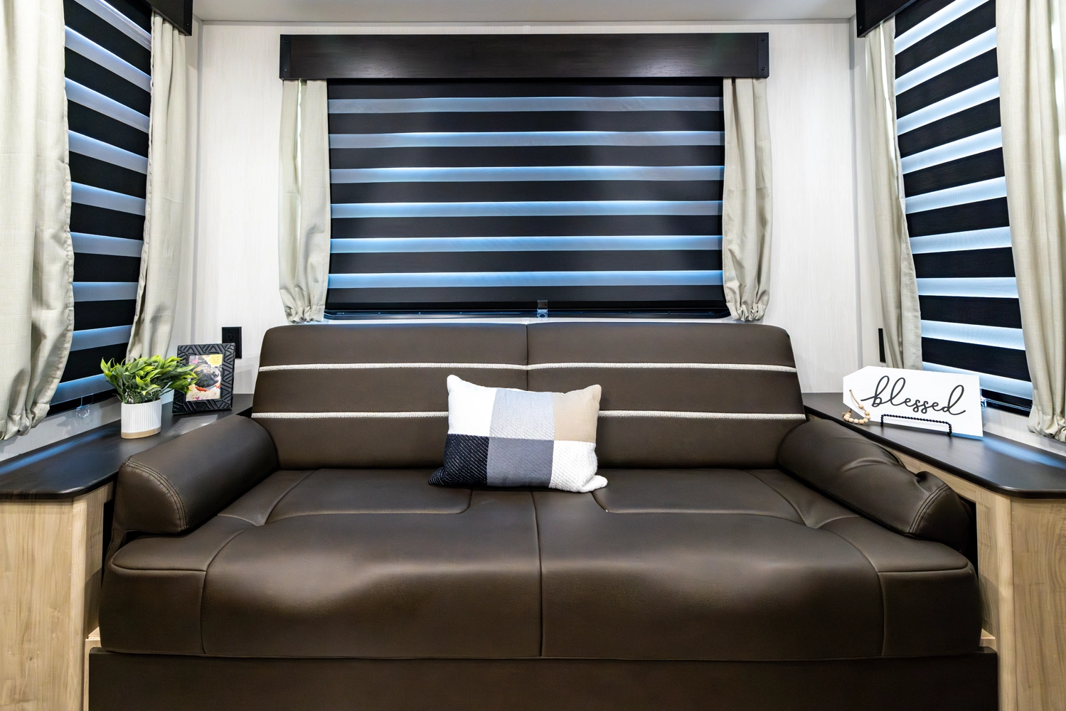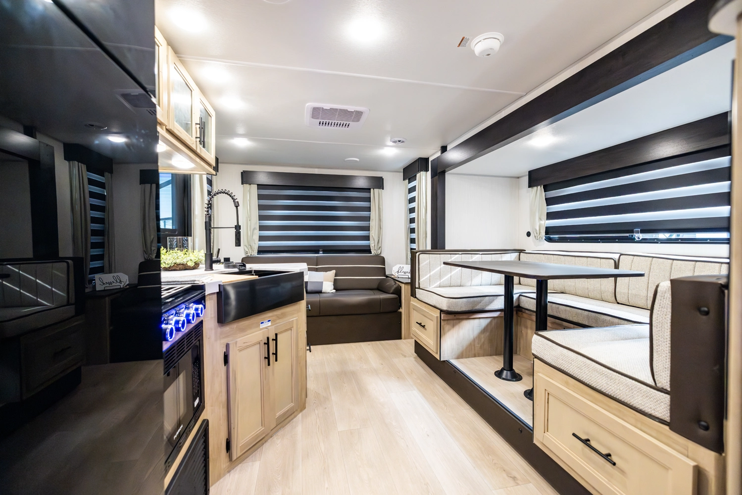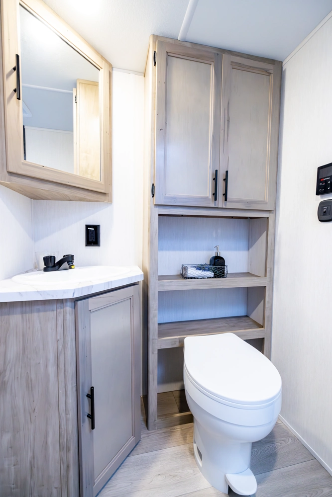 The Grey Wolf 23MK by Forest River is a perfect travel trailer for families and couples alike. The spacious U-shaped dinette, situated in a slide-out, offers ample seating and sleeping space. The rear sofa provides additional seating and a comfortable TV viewing area. The modern kitchen, with its full-size pantry, offers plenty of storage and prep space. The private master suite, with a queen-size bed and a full bathroom, provides a peaceful retreat.