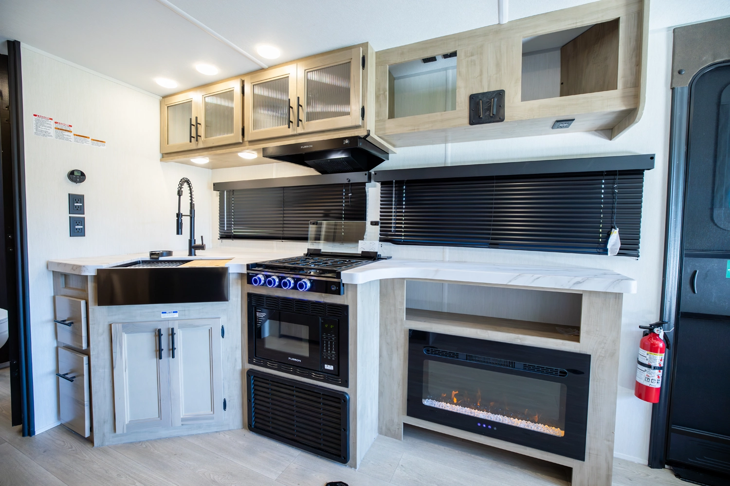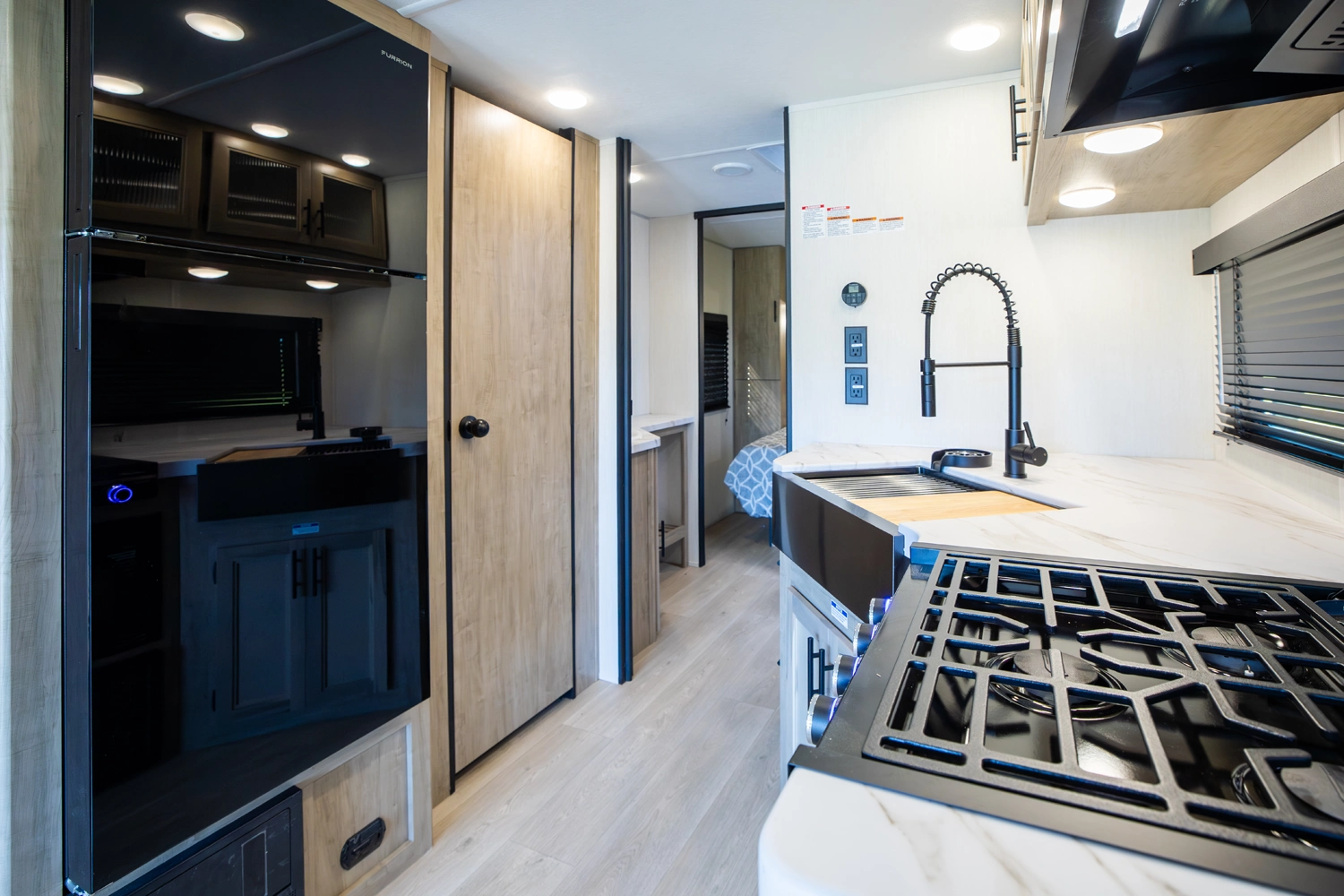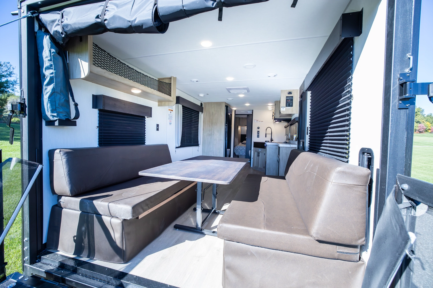 The Grey Wolf 24RRT by Forest River is a versatile and affordable travel trailer that offers a spacious open-concept design. The rear ramp provides easy access to the toy hauler garage area, which can be converted into a patio deck for outdoor living. The comfortable living area features ample seating and a collapsable table. The well-equipped kitchen, with its full-size pantry, 12-volt refrigerator, air fryer combo microwave, and plenty of prep space, is perfect for cooking and entertaining.