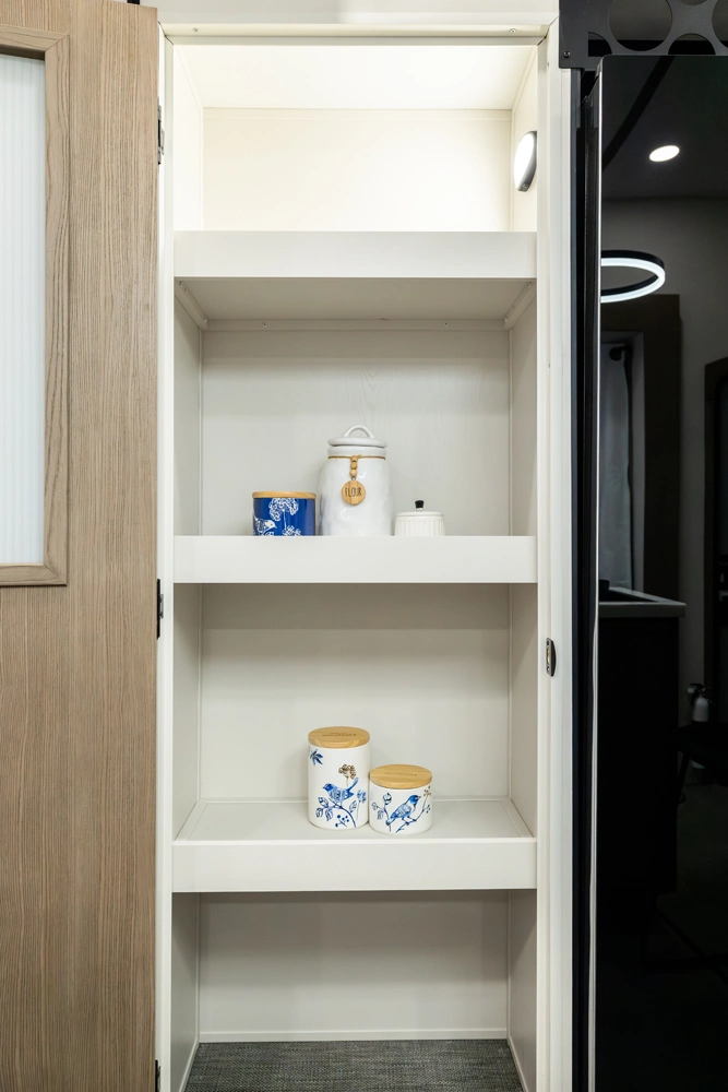 • 110 Outlet & 12V Charging Ports Beside Bed