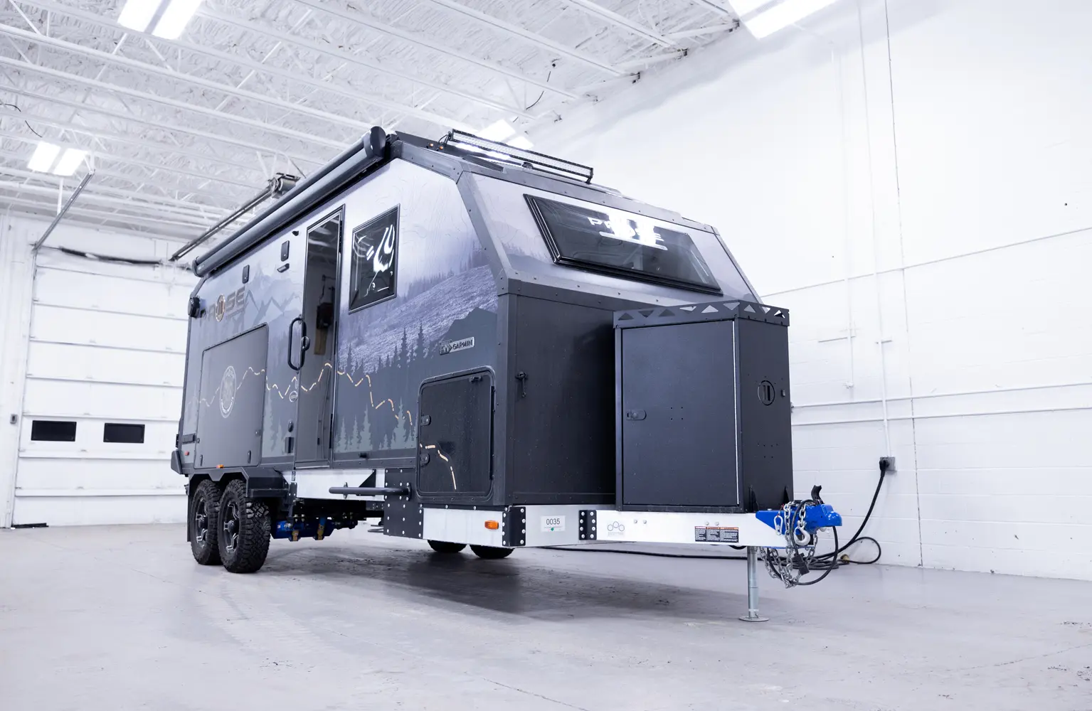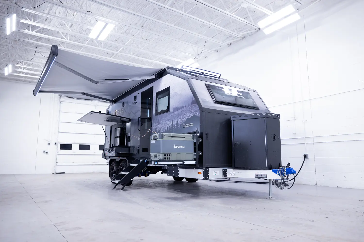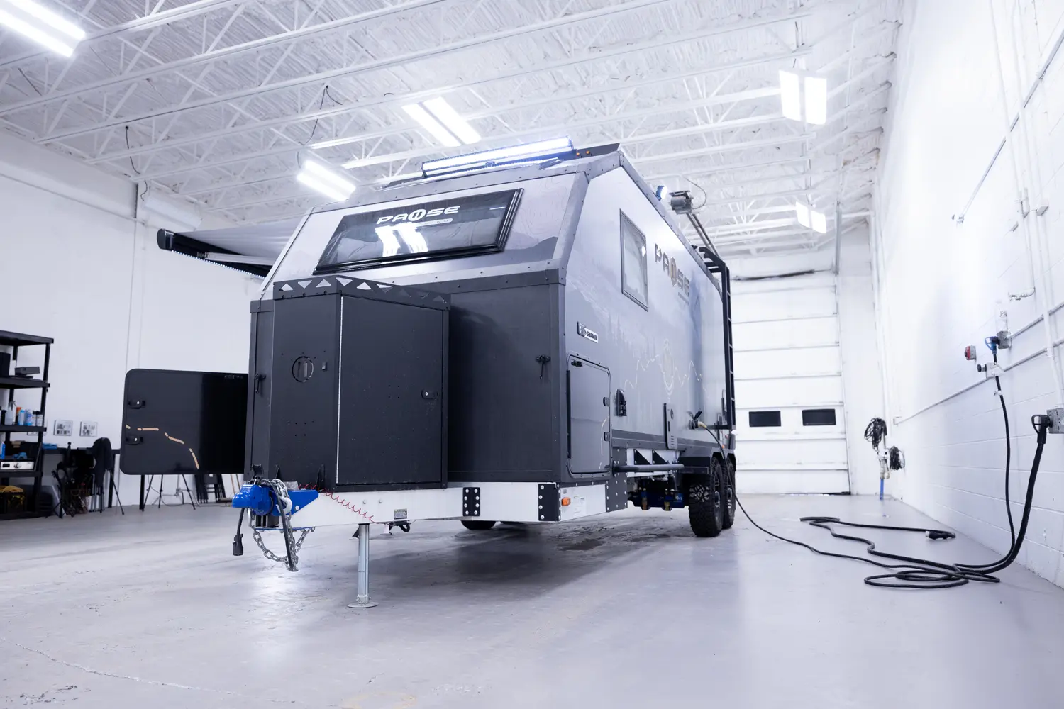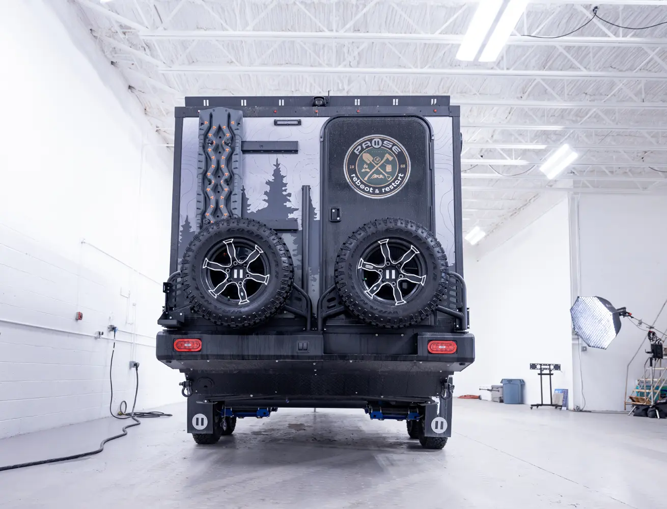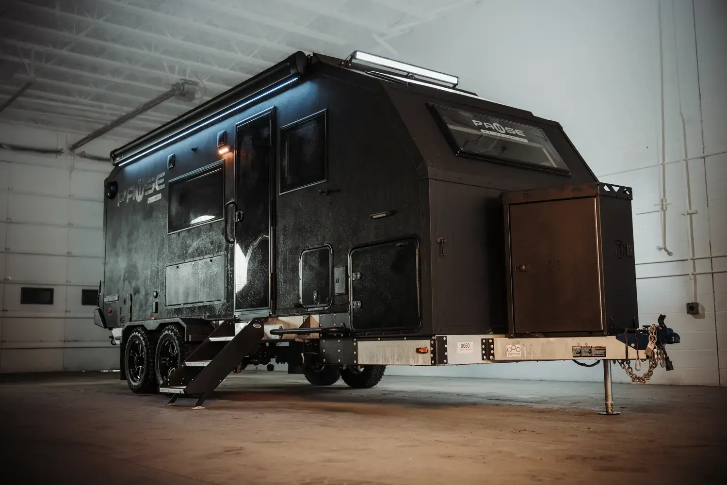 In this Pause floorplan, spend all your time cooking in the great outdoors with the Deluxe Outside Kitchen. With a 4.5 CF Refer, a microwave, sink, a grill and griddle combination and a pantry, you will have everything you need for a large meal. Furthermore, you will be granted with a large storage room in the back of the coach and a lockable storage area behind your entertainment center wall. Enjoy a Full Size Queen bed in the front with shirt closets and outlets on both sides.