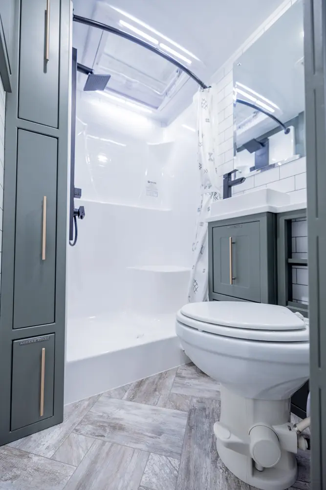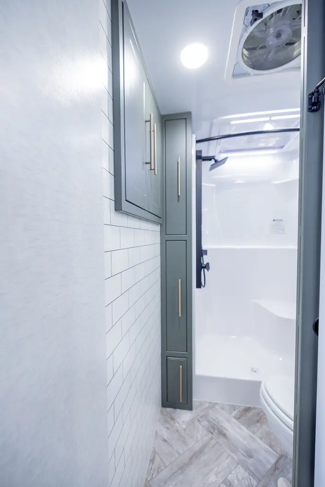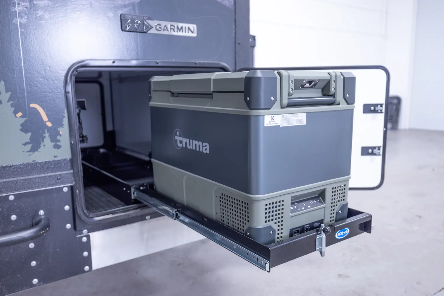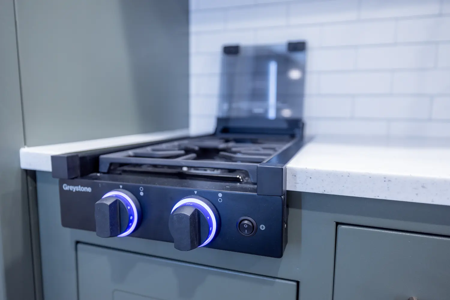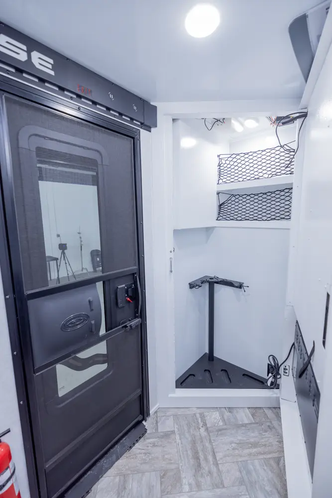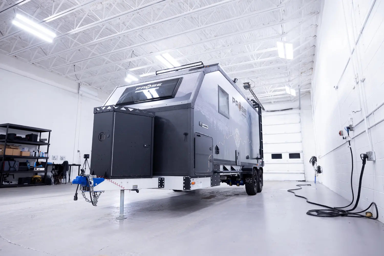 In this Pause floorplan, spend all your time cooking in the great outdoors with the Deluxe Outside Kitchen. With a 4.5 CF Refer, a microwave, sink, a grill and griddle combination and a pantry, you will have everything you need for a large meal. Furthermore, you will be granted with a large storage room in the back of the coach and a lockable storage area behind your entertainment center wall. Enjoy a Full Size Queen bed in the front with shirt closets and outlets on both sides.
