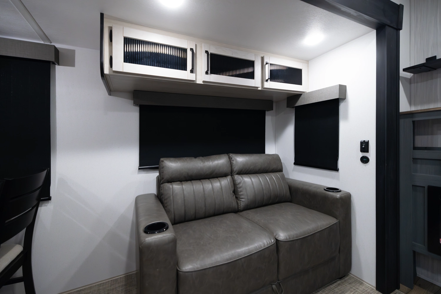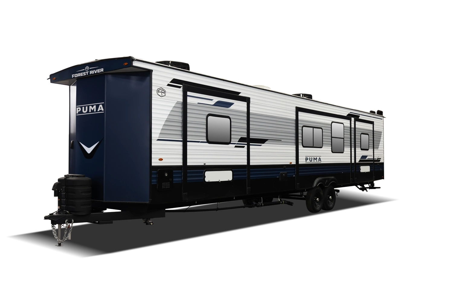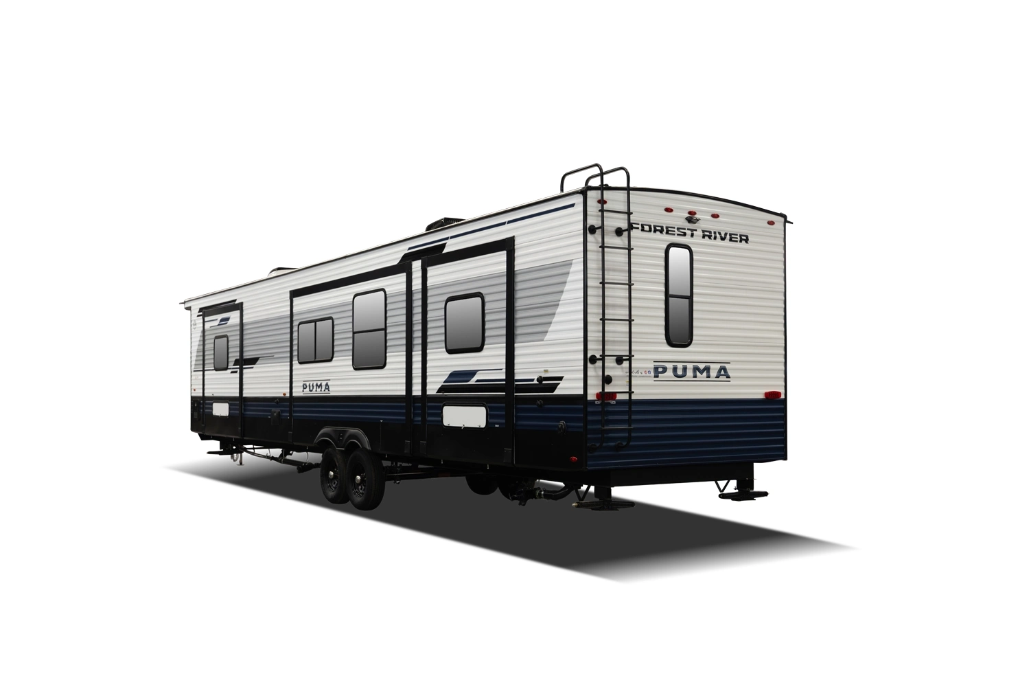 This Puma Destination Trailer features a front bedroom with a king bed slide out and rear bedroom with a queen bed slide out. Enjoy plenty of space for guests with a sofa and dinette. The rear queen bed slide out provides a comfortable bedroom for guests. For the guests in the rear room, a bathroom is also provided as well as a bathroom in the front of the camper as well. Furthermore, A wardrobe along with a closet with washer/dryer prep can be found very useful for all of your belongings.