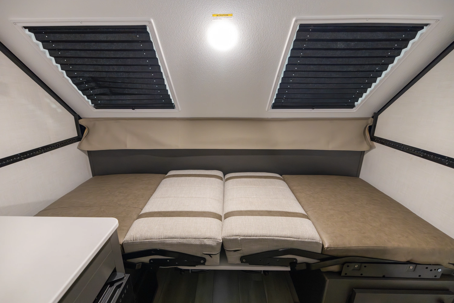 The Rockwood A101RB is a traditional A-frame that blends simplicity with smart design. It features a front 33" x 80" dinette and a rear 54" x 80" bed that flips up for easy access. Inside, you'll have a convenient fridge, and outside, an easy-reach storage trunk and a griddle for cooking up meals wherever you go.