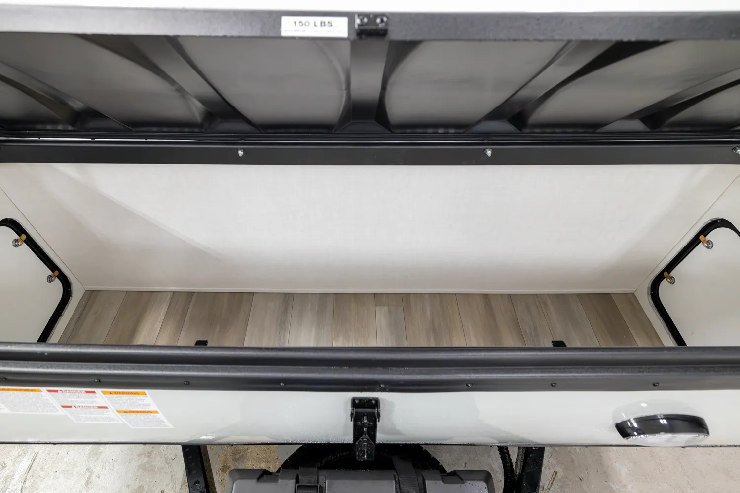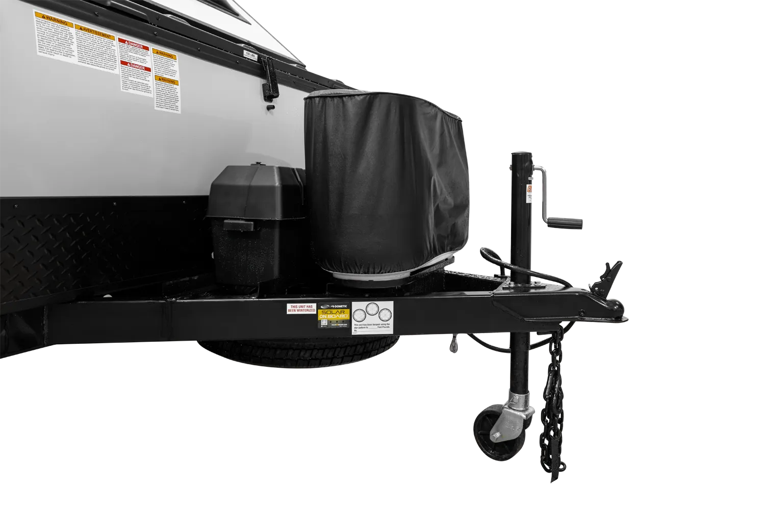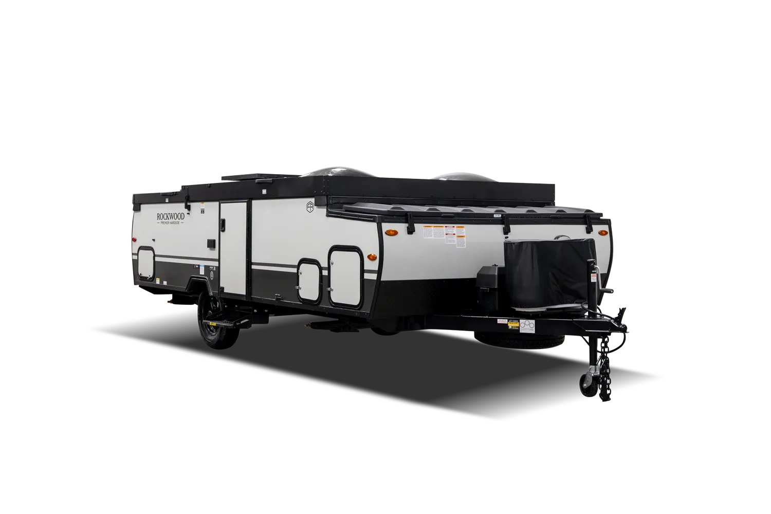 The A122S is exactly like the A122 with a large storage area on the front with all the comfort features and sets up into a firm structure in just minutes. The large window on the front side gives the dinette plenty of seating for four. If you're looking for a small A-frame camper with tons of storage, this is the camper for you.