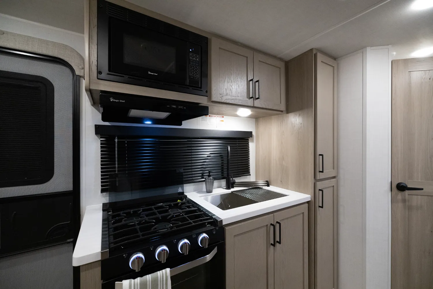 This incredibly popular floor plan has three bed expandables and one slide out featuring a large U-Shaped Dinette. All three expandable beds are residential Queen 60 x 80 beds. There is also sleeping on the 44 x 85 U-Shaped dinette and on the 67” flip out sofa. With the potential to sleep 10 people in a coach that weighs just over 5,000lb, this is a truly unique floor plan.