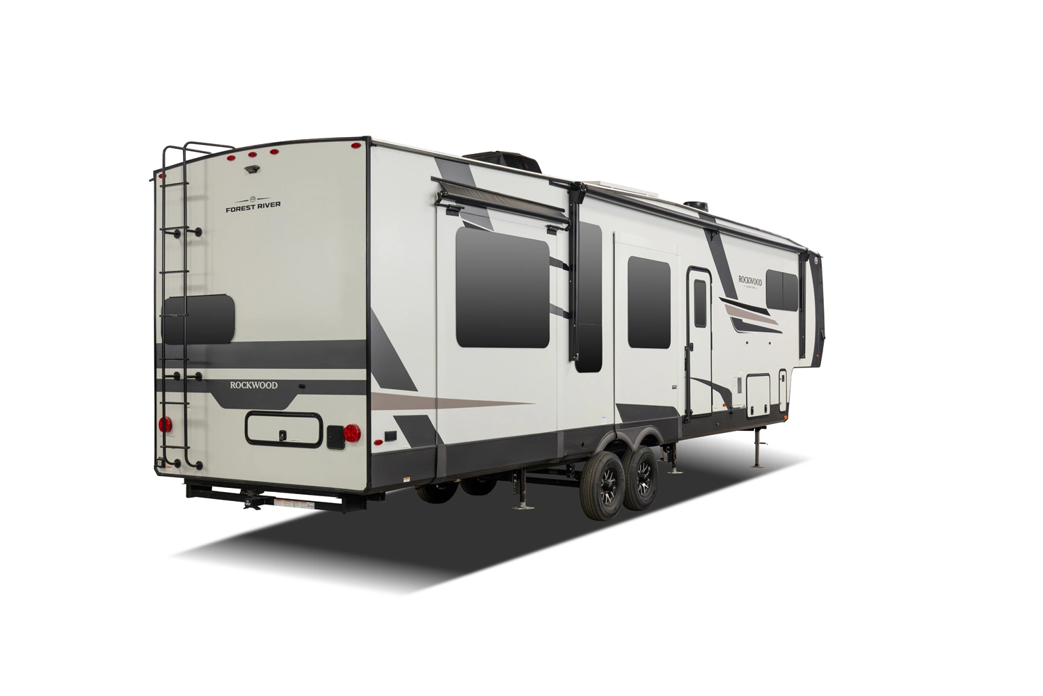 This 101" Wide Body fifth wheel is a rear kitchen layout features expansive counter space, residential style appliances, and abundant storage, making it ideal for those who love to cook while traveling. The mid living area features an L-shaped sofa with an integrated Hide-a-bed and 52" theater seat that requires no dismantling when the slides are retracted. Up front you have a private bedroom with a king bed and generous wardrobe space that is Washer/Dryer ready!