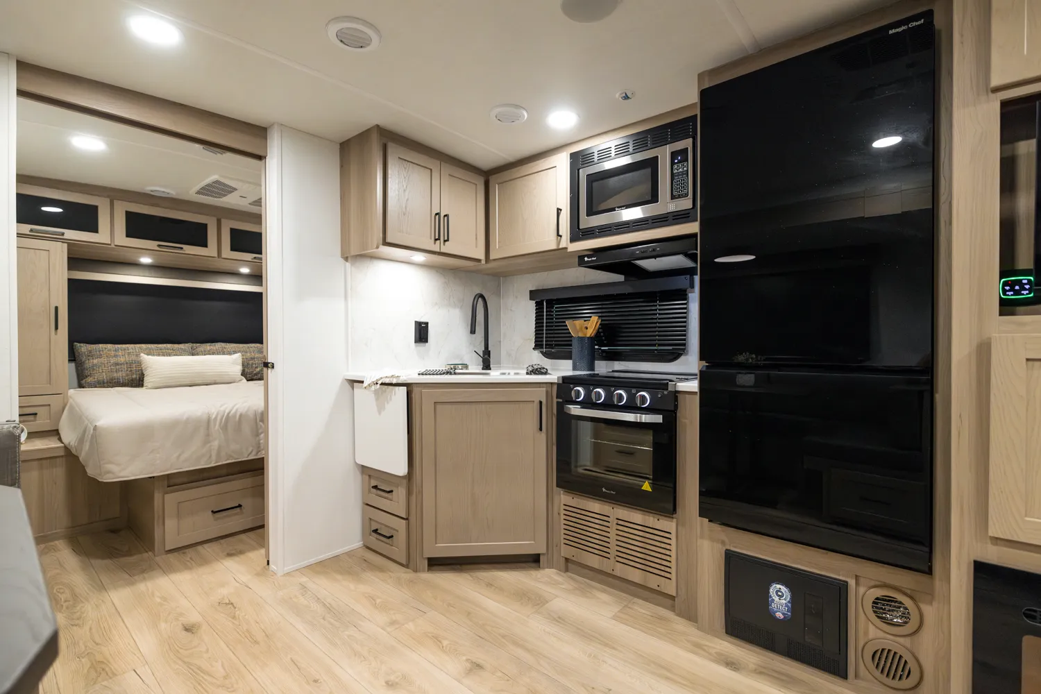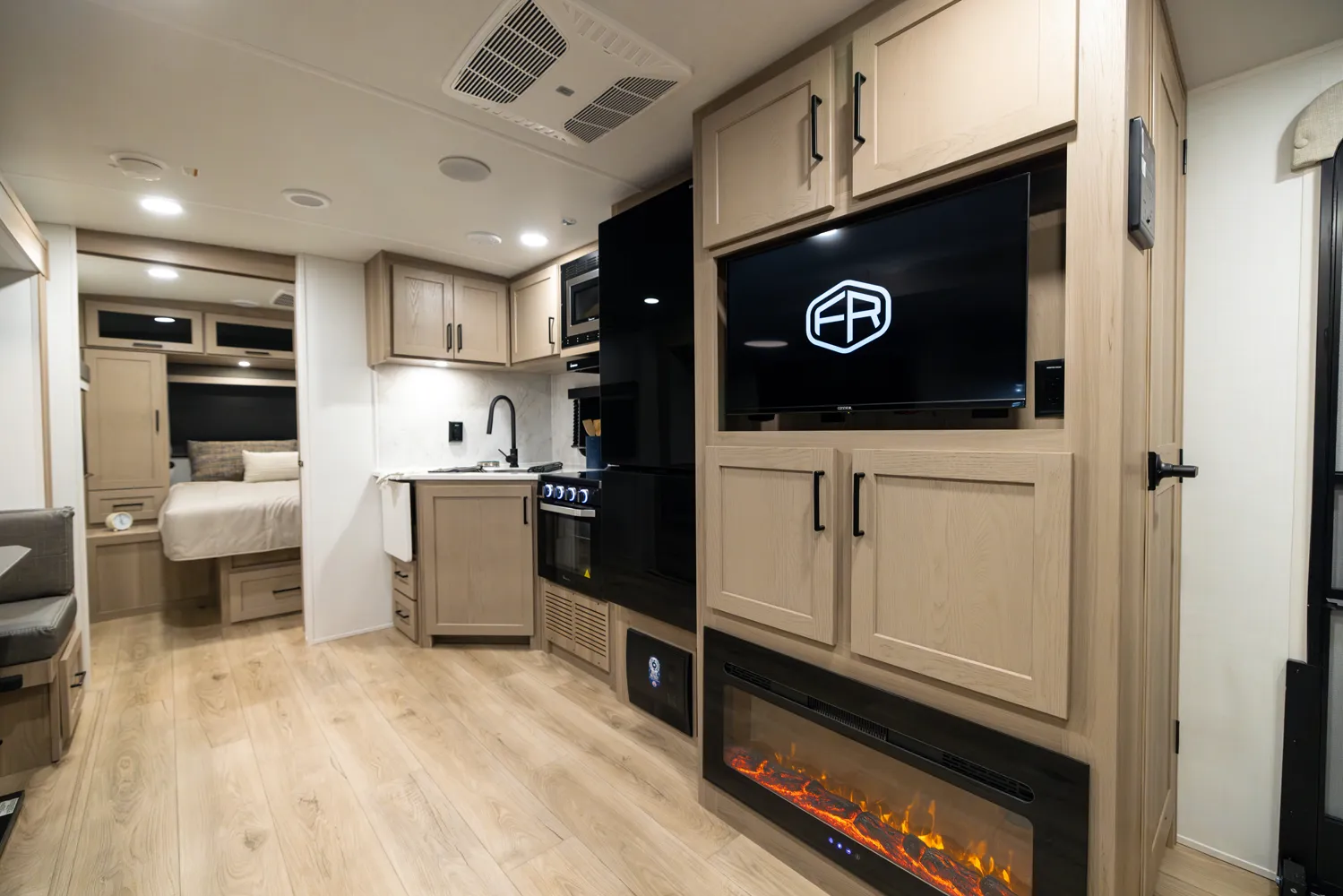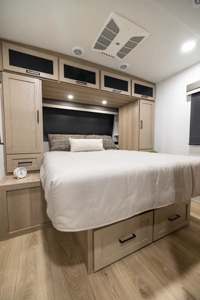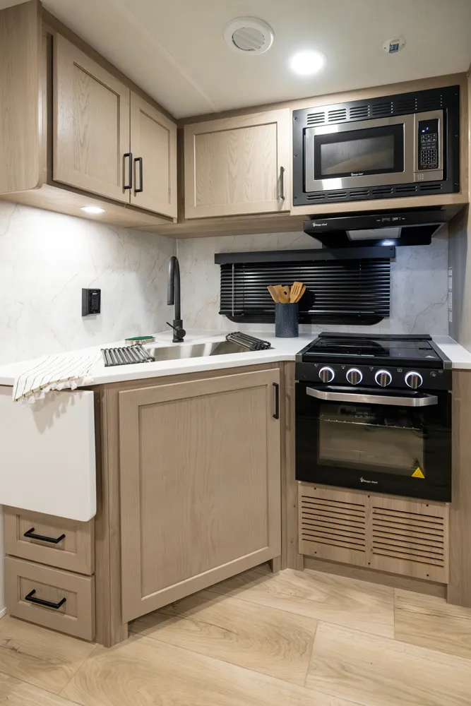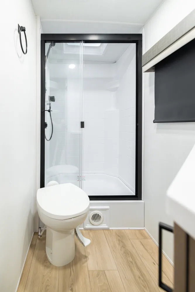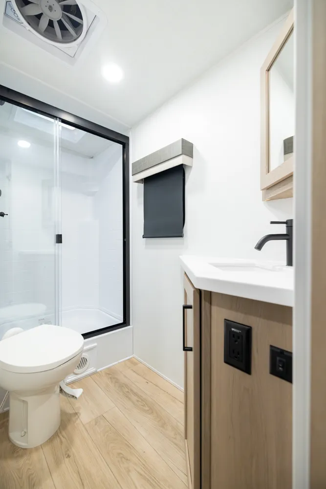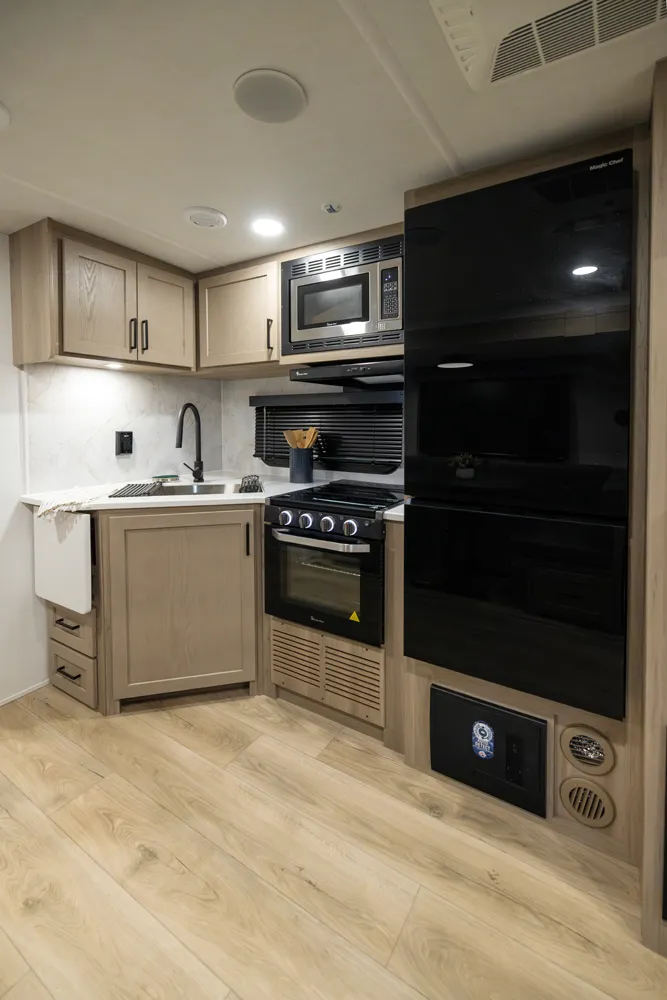 • Platinum Package: Auto Leveling, Frameless Windows, 1800W Inverter, MORryde Strut Assist Entry Step, Dual 30 LP Tanks