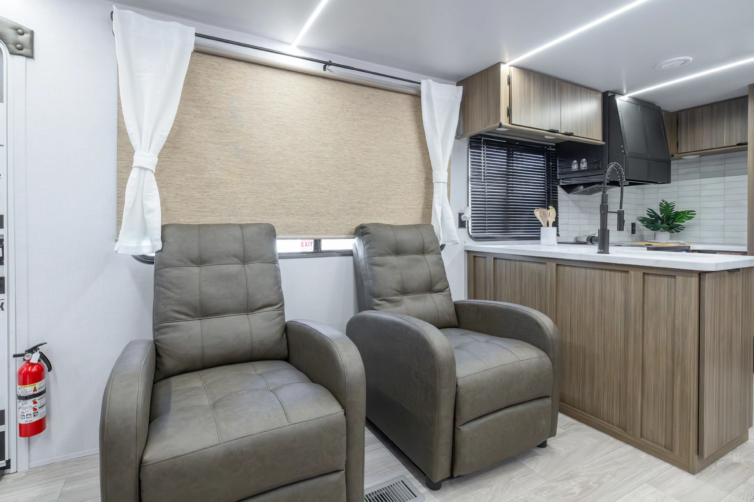 The 27RK stands out with its spacious kitchen and panoramic campsite windows. You will love the Versa-Lounge, which can reconfigure and customize according to your needs—and conveniently below is the Stow N Go Storage! This model also provides a fireplace (heater) and 11 CU. FT. refrigerator making you feel right at home.