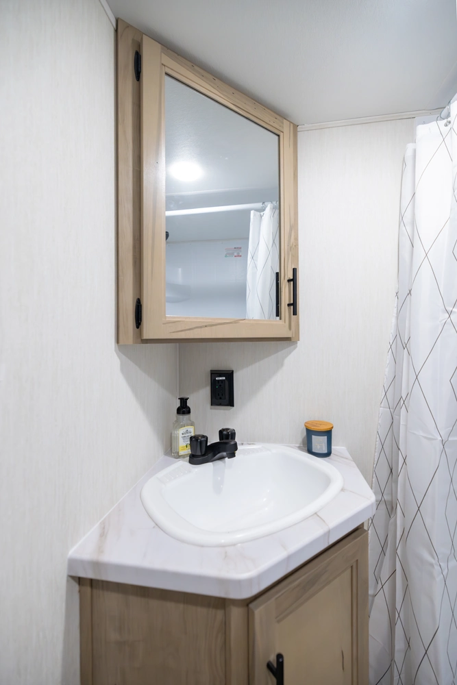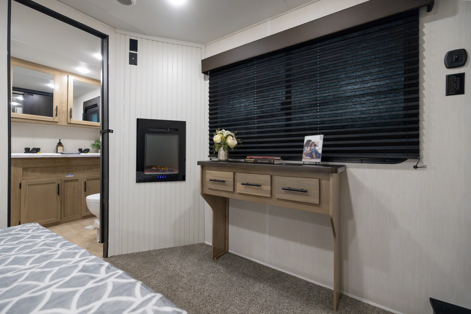 • Blackout Glass, Safety Slam, Friction Hinge Entry Door with Window and Shade Prep (N/A on LP models)