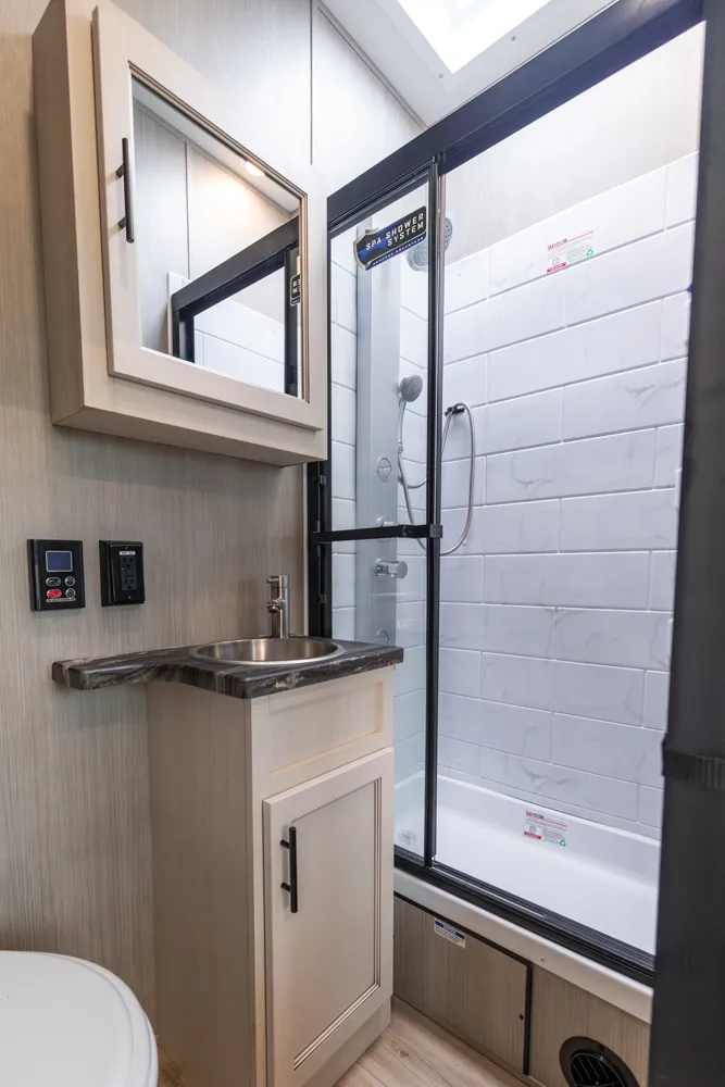 • Padded Headboard with Arm Rests & Cup Holders »Skylight Over Shower