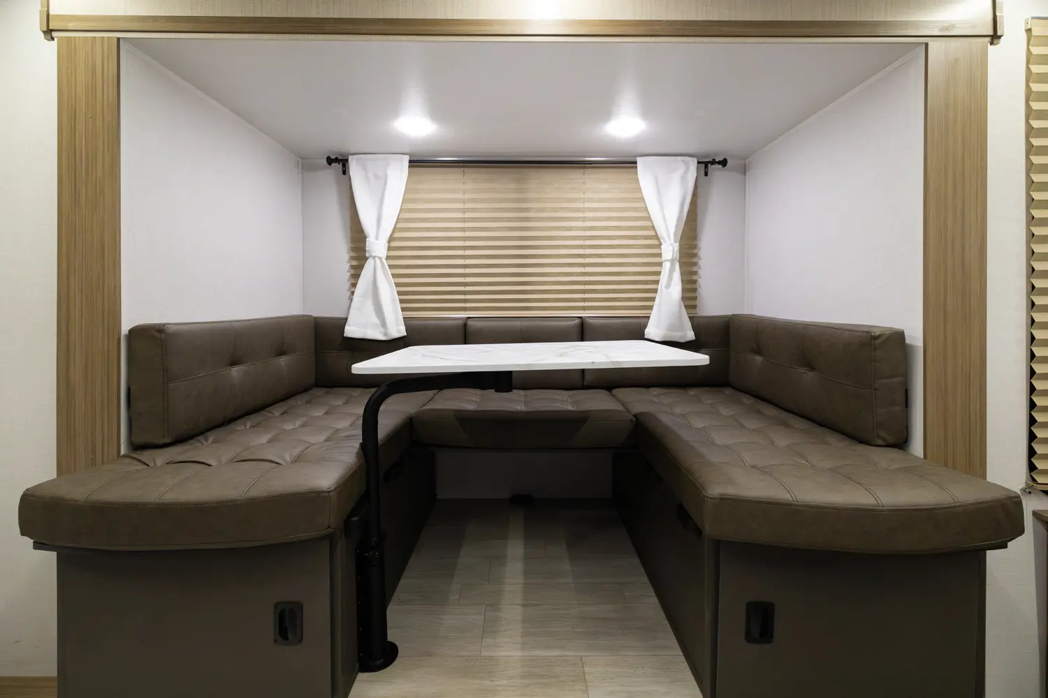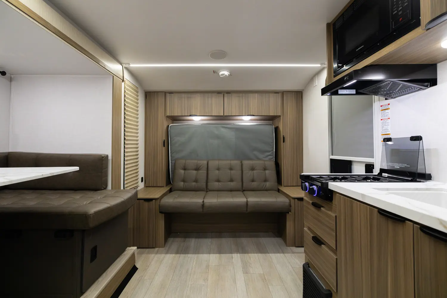 The 178BHSK is packed with features and weighs in at less than 4,000 lb. The unique front queen bed flips up to create additional seating space during the day. The kitchen slide provides extra room for the ever-popular U-dinette and includes a panoramic window. The rear bunkhouse gives you double over double bunks for additional flexibility and comfort, while the outside kitchen gives you additional options for mealtime and entertaining.