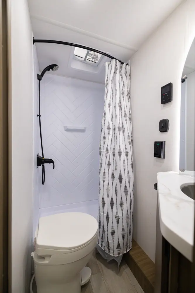 • Large 36x24 Shower Pan w/ Shower Surround + Waterproof Retractable Shower Door (No Curtain)